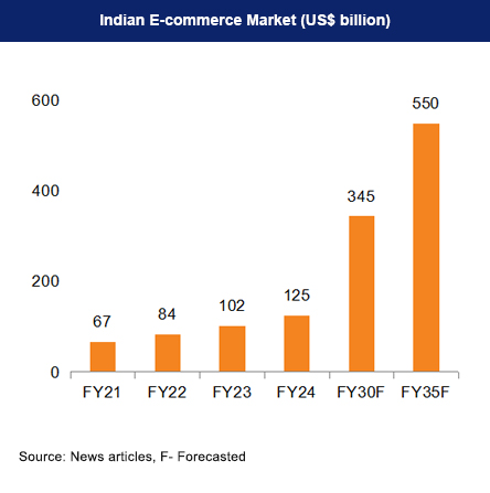 Take e-commerce, for example. According to the India Brand Equity Foundation, the Indian e-commerce market has been growing at a CAGR of nearly 20% for the last four years.